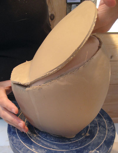 up. Next, now that the form is free from the mold, slip and score it all back together and smooth and compress the seams inside and out.