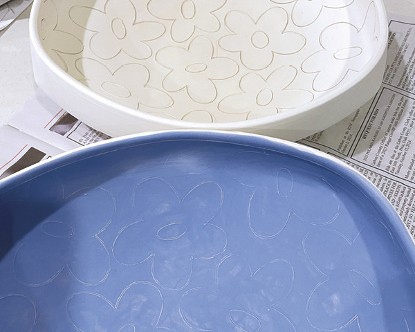 Begin by forming a wide bowl, platter, or serving dish. Allow the form to firm up to leather hard. Drawing on leather-hard clay gives a clean line, whereas bone-dry clay delivers a ragged line that makes it difficult to inlay color cleanly. I use a cone-10 porcelain without grog. Any clay can be used, but keep in mind the finer the clay particles, the crisper your lines will be.
