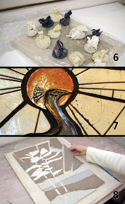 fire my mural pieces in a raku kiln (figure 9). Due to the extreme range of reduction effects that influence the glaze surface and color