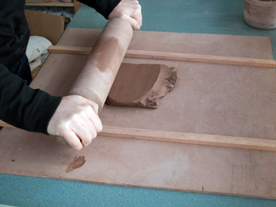 No slab roller? No problem! All you need are two same-sized sticks and a rolling pin. Cut the slab on the surface where it will dry. This helps to minimize warping.